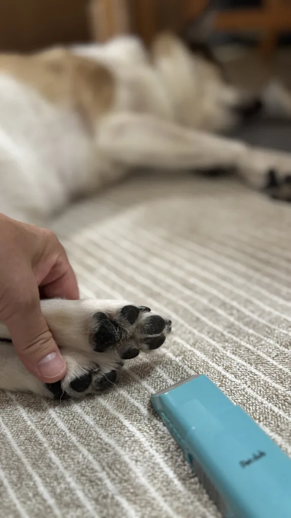 【らん@里親募集中】お手入れ楽々〜! 2025.09.23 らんちゃん、お手入れ編🎵基本寝たまま、ゆっくりやらせてくれます😆 今日は初めて足裏バリカンを試みました!逃げるかな?と思いながらスイッチオン! ん⁉️って思った様子はあれど、ずーっと寝たまんま🤣 ブラッシングも同じ調子で、す〜やすや😪 お散歩帰りの足拭きも協力的!ジーッとしてくれるので、ゆっくり拭かせてくれますよー👍🏻