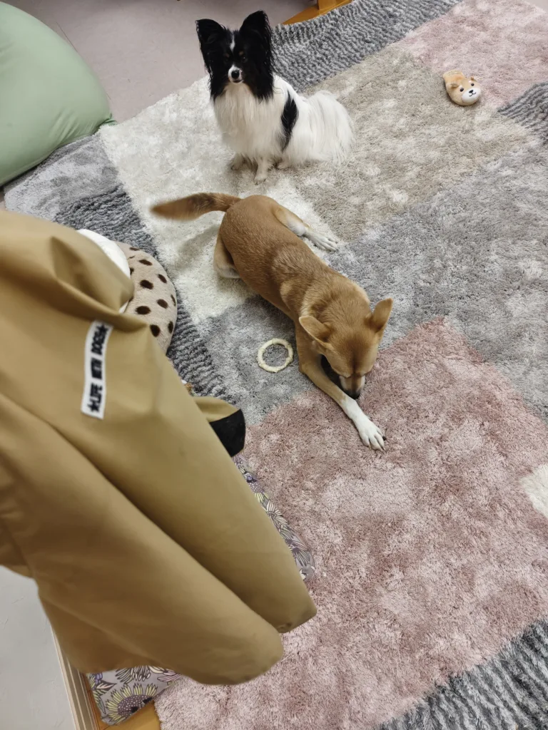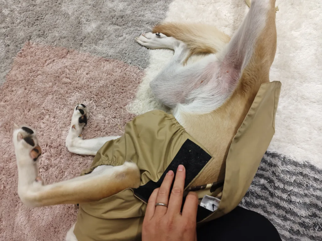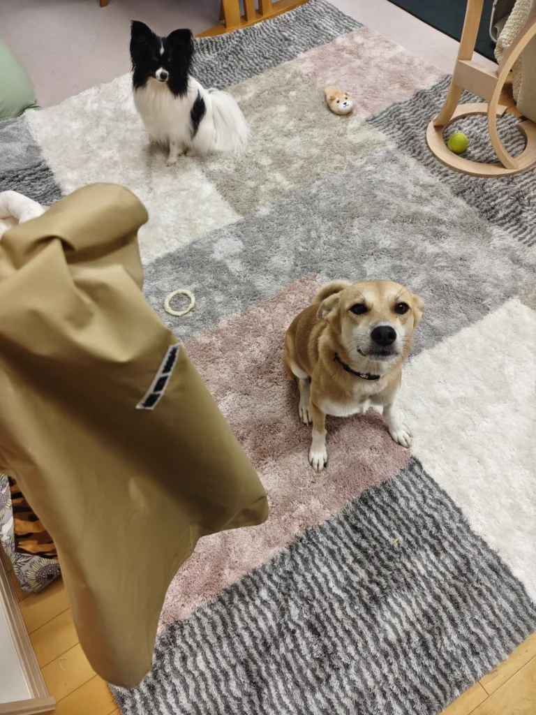 【エンジェル@里親募集停止中】雨散歩は・・・ 2025.10.16 エンジェルちゃん、雨の日のお散歩はあまり楽しくないみたい。「お散歩いくよー!」と言うと玄関までわーい!って駆けてくるけど、私がカッパを手に取るとリビングに戻っちゃう💦 そして、「私は行きません」という意思表示(笑) 251016061638520 251016061629107 いざ、カッパを着させようとすると 251016061839994 ゴロンゴロンと😂 暴れたり逃げ惑わないところが良い子のエンジェル❣️ カッパは着せやすいものがオススメです🤭