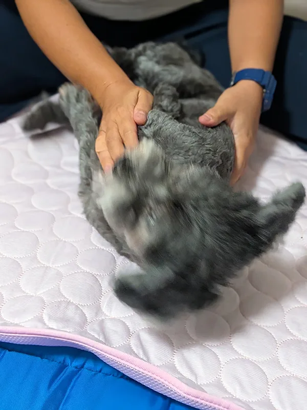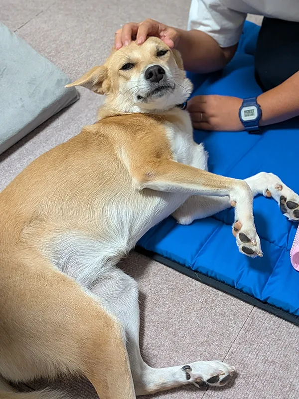 昨日は、ぶんたもお待ちかねのマッサージデー。定期的に来てゴッドハンドで至福の時間を提供してくださるスウェーデン式ドッグマッサージのセラピスト・UMICOさんに、昨日も来ていただきました!