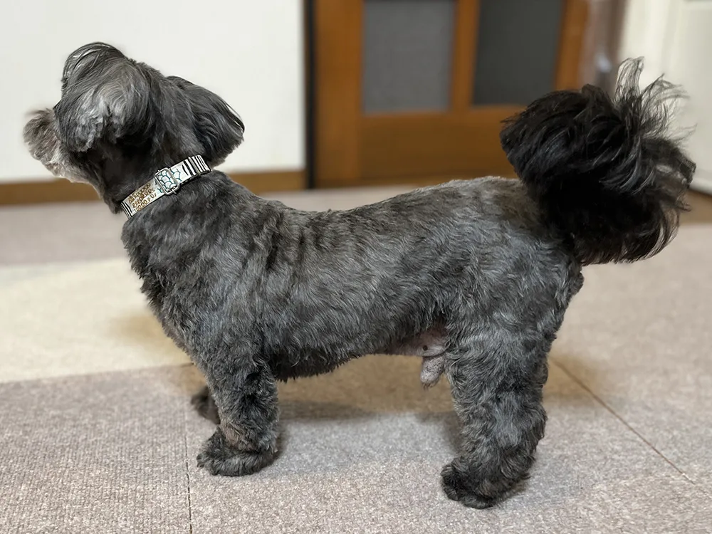 シュナウザーは間違いなく入ってるであろうぶんちゃんのフォルムですが、ちょっと胴長短足気味で“謎犬感”を出してるのがチャームポイントです❤️
