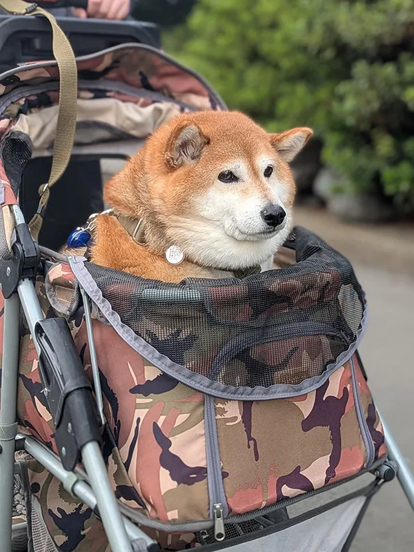 もともと活発に動くタイプじゃないとはいえ、カートに乗ってもおとなしいもんで、お地蔵さんのようにじっとしていてくれます😂