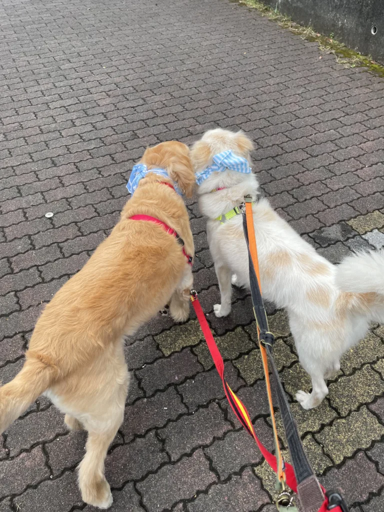 以前のお散歩では追われるように早足で進み、すぐに疲れてペースダウンしてしまっていましたが、体力もつき、お散歩メンバーにも慣れ、程よい速さで楽しく歩くようになりました。