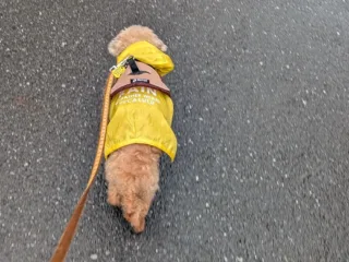 幸太郎くん、寒い日のお散歩はあまり好きではなさそうですが、雨の日はぐんぐん歩きます。レインコートのフードが外れててもお構いなし😅たくさん歩いたあ...続きを読む